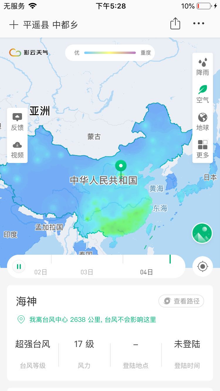精確到分鐘級降水預報 長達五天的多數據源天氣預報 獨家全國降水雷達拼圖 關注地址獲取降雨提醒